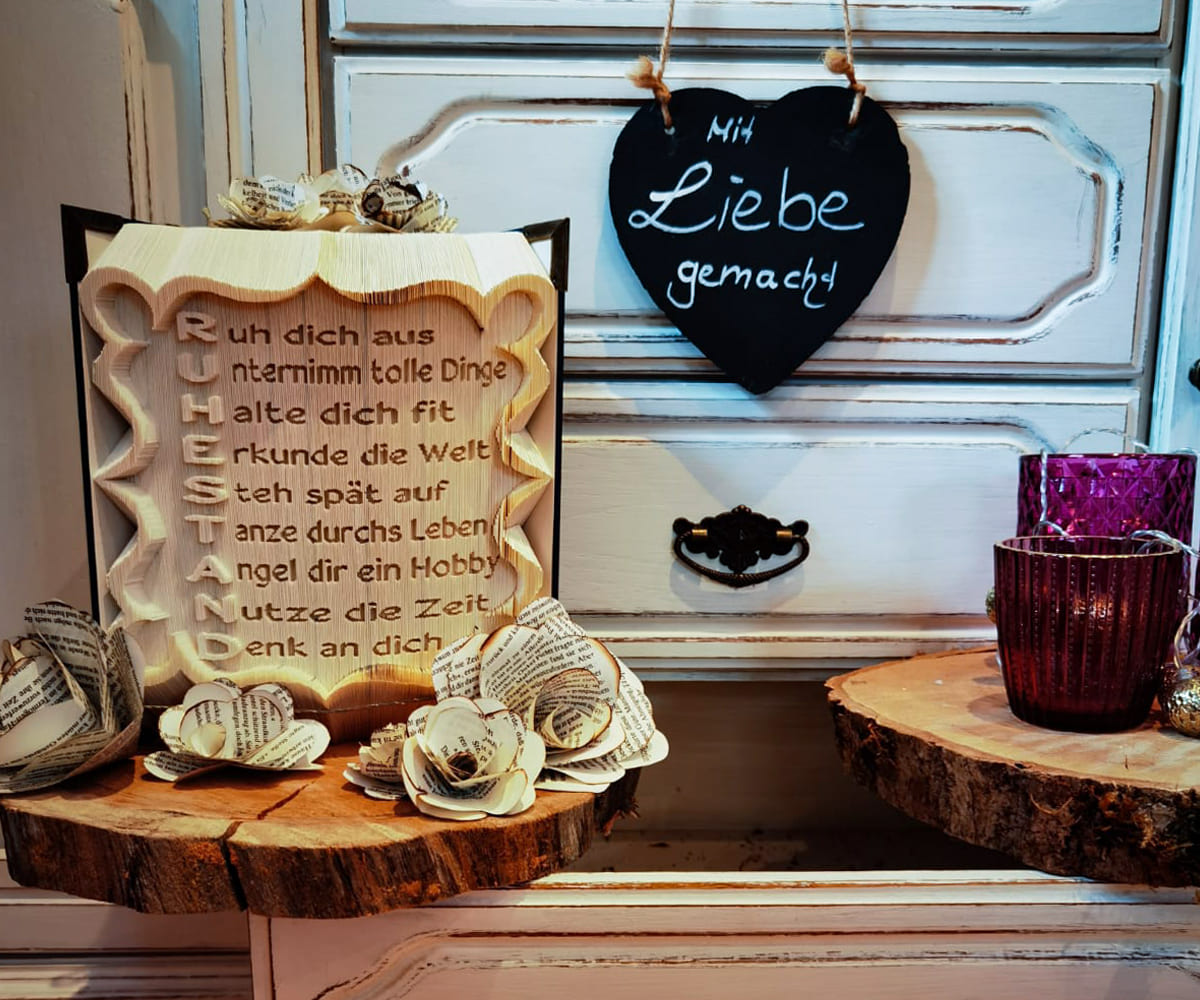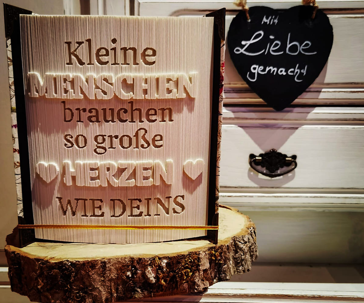 Dann reserviere ich Dir einen Faltplatz. Bei der Terminvergabe kommt es auf meine Auftragslage an und hängt auch davon ab, wie konkret Deine Ideen für dein Buch sind. Ich versuche meine Faltplätze so kurzfristig wie möglich zu vergeben, um deine Wünsche schnellstmöglich umzusetzen zu können.